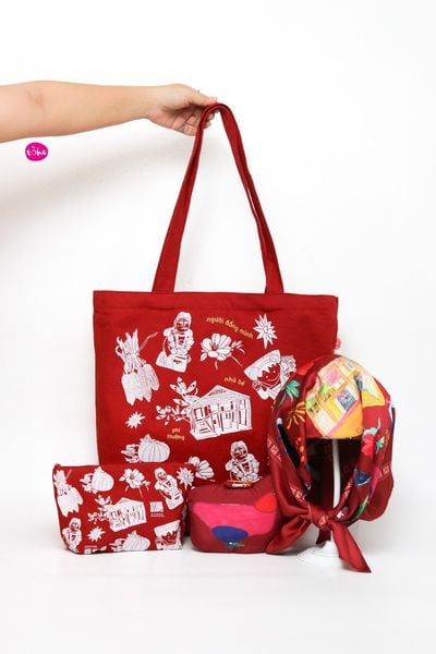 Từ sự đồng điệu ấy, Thiểu số và Tòhe cho ra mắt bộ sản phẩm độc đáo gồm: túi tote, túi gấp gọn, ví, khăn bandana và sổ tay.
