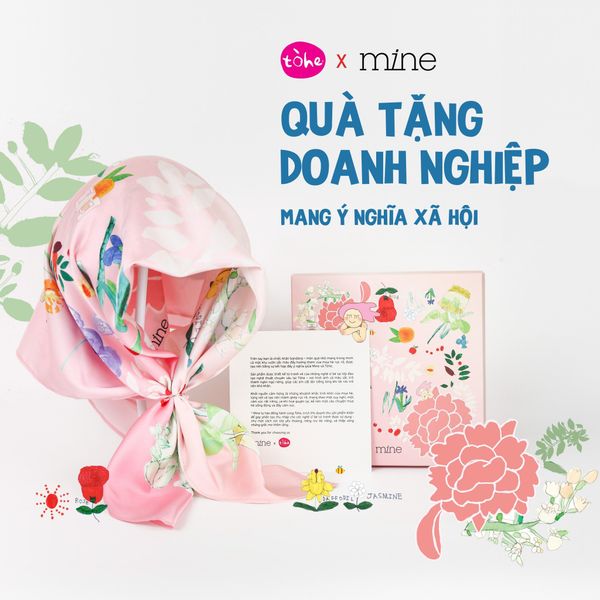 Trong lần ra mắt bộ sưu tập mới nhất, MINE kết hợp cùng Tòhe thực hiện món quà tặng đặc biệt: khăn bandana phiên bản giới hạn. Mỗi chiếc khăn là một "khu vườn mùa hè" thu nhỏ, được thể hiện hồn nhiên qua trí tưởng tượng phong phú của các nghệ sĩ bé tại lớp đào tạo nghệ thuật chuyên sâu Tòhe.