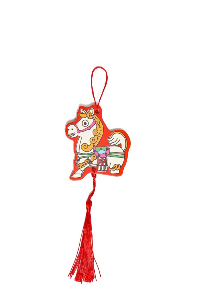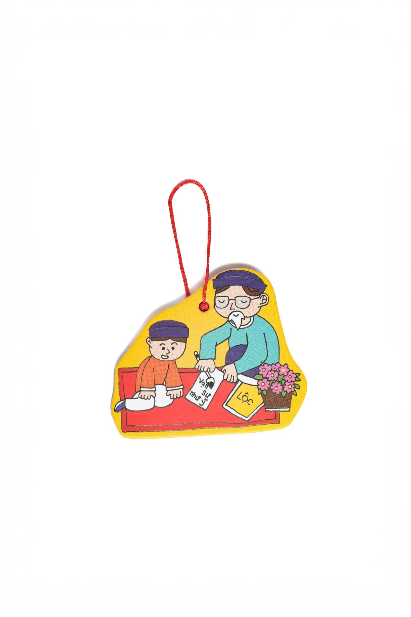 - Quy cách: mặt trước họa tiết, mặt sau đỏ trơn, có sẵn dây treo